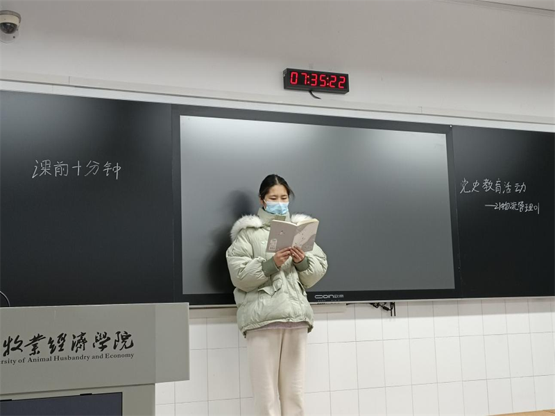 学党史以推动方法创新。21电子商务02班班长带领同学们学习党一路走来的历程,感悟党员干部的开拓精神,从嘉兴南湖之畔的一叶红船,到今天乘风破浪扬帆远航的“中国号”巨轮,我们党之所以能破除一个又一个困难,战胜一个又一个挑战,很重要的一个原因就是立足实际、守正创新,不断提高应对风险、迎接挑战、化险为夷的能力水平。