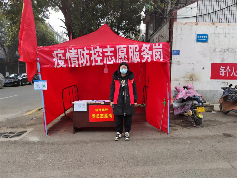 来自河南省南阳市的21电商02班的金鑫同学,当她得知社区紧急招募志愿者后,也立即加入了家乡疫情防控工作中,成为社区疫情防控志愿者的一员。金鑫同学的主要工作为在街道口登记返乡人员,并对进入社区的人员进行体温检测。她认为,作为一名老员工,应在祖国和人民最需要的时候挺身而出,贡献青春力量。
