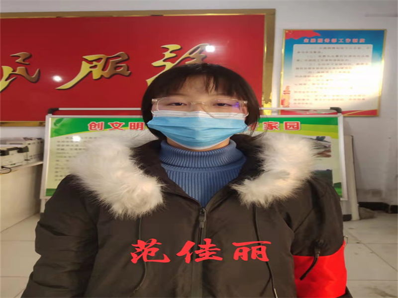 此轮寒假期间爆发的疫情也牵连了21物工01班的范佳丽同学的家乡,范佳丽同学所在的村委会工作人员连日奋战在一线,范佳丽同学的主要工作为协助医护人员紧急进行全员核酸检测。范佳丽同学认为作为一名老员工就应该不惧困难且勇往直前,她相信只要大家众志成城、齐心协力,就一定可以战胜疫情,迎来美好的明天。